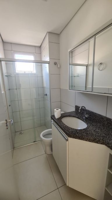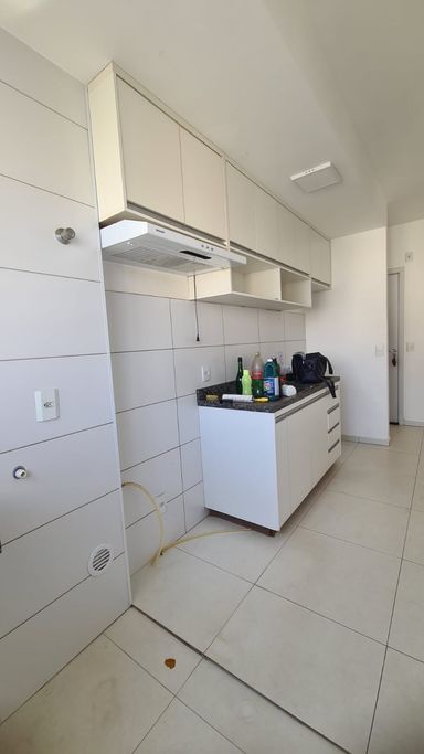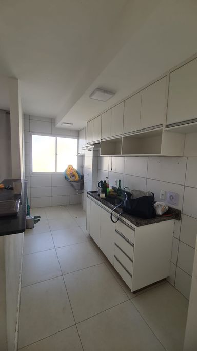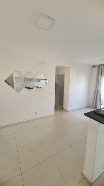 Apartamento sendo sala em dois ambientes, sacada, cozinha estilo americana com armários planejados, lavanderia, dois quartos sendo um suíte, banheiro social.
