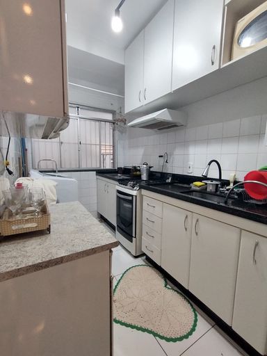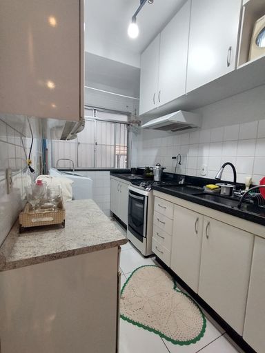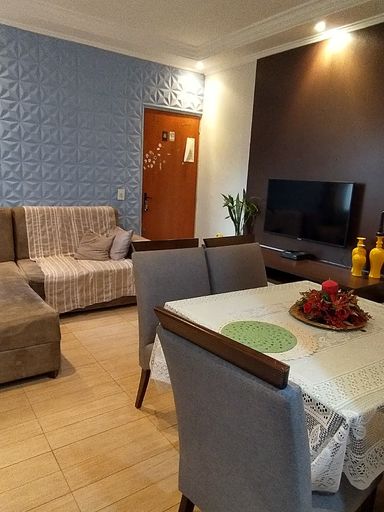 Lindo apartamento sendo sala com moldura em gesso, dois quartos com guarda roupas planejado, banheiro social com box, armário e espelho, cozinha com moveis planejados.