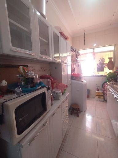 Lindo apartamento sendo sala, dois quartos, banheiro social com box, armário e espelho, cozinha, uma vaga de garagem coberta.