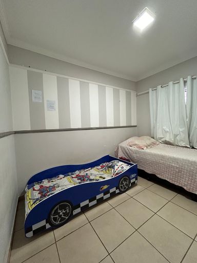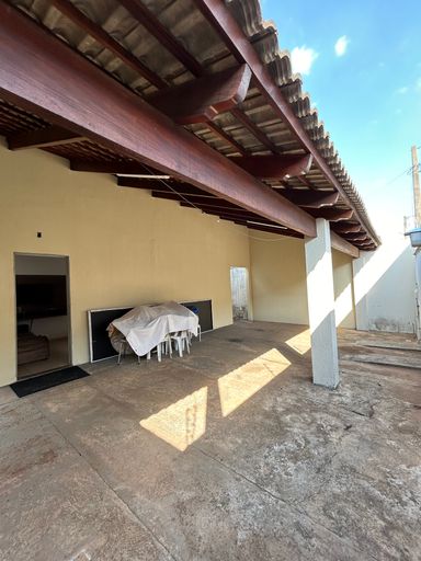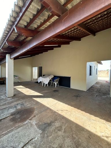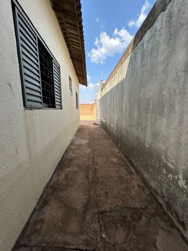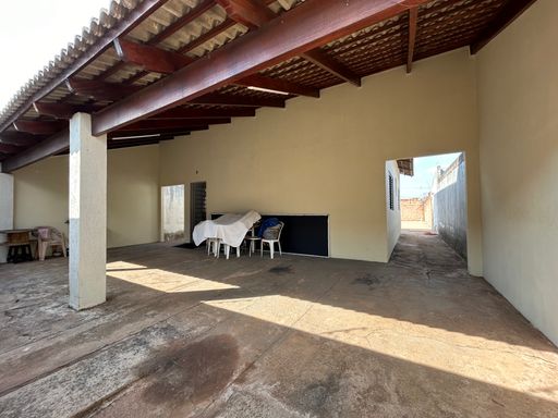 Casa com sala ampla, sanca de gesso, dois quartos, banheiro social com pia esculpida no porcelanato, cozinha, lavanderia coberta. Vaga de garagem para 3 veículos, possui corredores laterais, e um amplo quintal nos fundos com ducha.