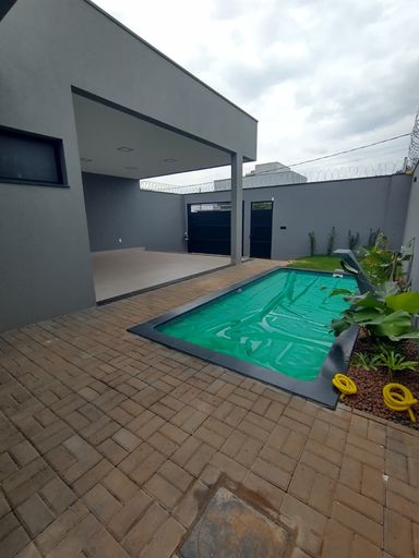 Casa linda e moderna sendo cozinha gourmet com ilha e churrasqueira, lavanderia coberta e totalmente separada, com acesso ao corredor lateral, salas de estar e jantar com pé direito duplo de 4 metros e jardim de inverno, lavabo, três quartos sendo um suíte com closet e jardim de inverno. Área de laser com piscina aquecida com hidromassagem, jardim. Garagem coberta para 2 veículos.