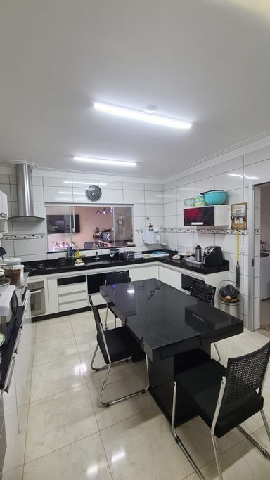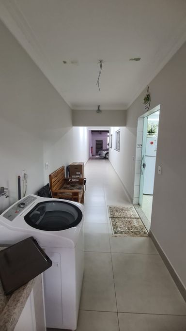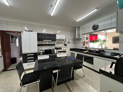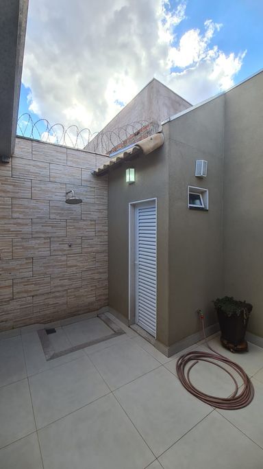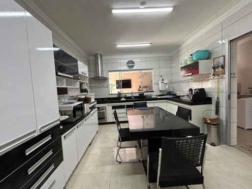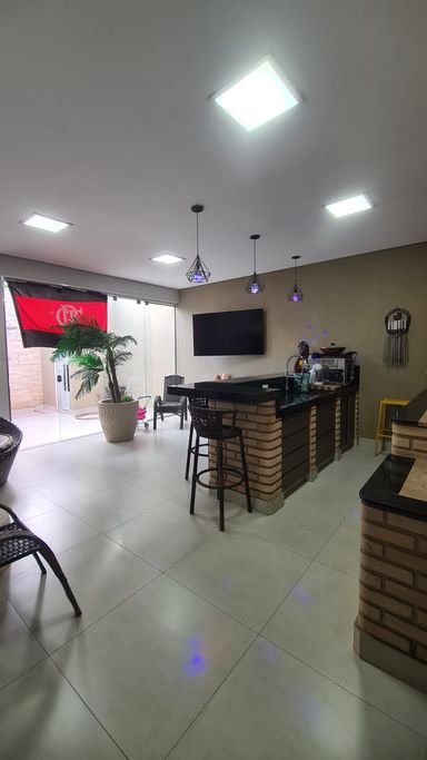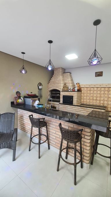 Linda casa sendo sala ampla em dois ambientes, com sanca iluminada, painel planejado, muito arejada, três quartos sendo dois com armário planejado sendo uma suíte grande, com box ate o teto, armário planejado e espelho, banheiro social com cuba esculpida, nicho, box ate o teto, iluminação em led, cozinha completa planejada, com forno, cooktop, coifa. Varanda gourmet com churrasqueira, forno e fogão a lenha, armários em baixo da pia, lavabo, lavanderia coberta, corredor lateral, 3 vagas de garagem.