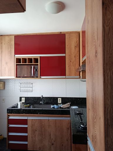 Lindo apartamento todo reformado sendo, sala com painel planejado, cozinha completa com armários planejados e fogão cooktop, dois quartos sendo um com guarda roupas, e ar condicionado, banheiro social, com box, armário, espelho, teto rebaixado em gesso com iluminação.
