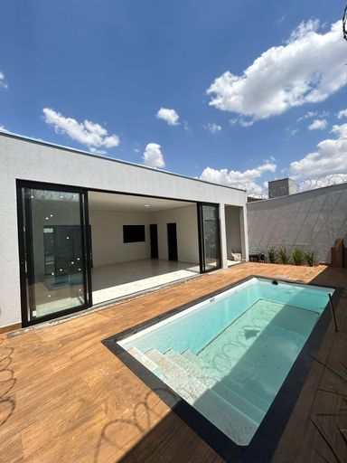 Ampla casa com sala, copa e cozinha com bancada em granito, cooktop e armário planejado, três quartos, sendo um suíte com nicho esculpido no porcelanato, banheiro social. Varanda gourmet com churrasqueira, cooktop, bancada em granito preto, lavabo. Casa completa com escritório, dispensa com prateleiras, lavanderia coberta, garagem coberta para 3 carros, piso interno porcelanato polido, varandas no porcelanato acetinado, portão eletrônico e calçada pedra macaquinho. Imóvel bem localizado próximo ao supermax, academia e posto parque do Sabia.