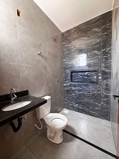 Dois quartos sendo duas suítes, banheiros com nichos.